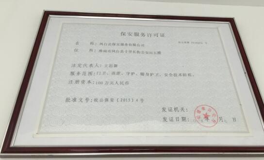 鳳臺保安服務有限公司成立于2007年,是經鳳臺縣公安局行政許可的經營企業,注冊資金1000萬元,具有國企背景(安徽州來控股有限公司),更是一家朝氣蓬勃的年輕企業。公司主營勞務派遣、保安服務、武裝押運等。 >>了解更多